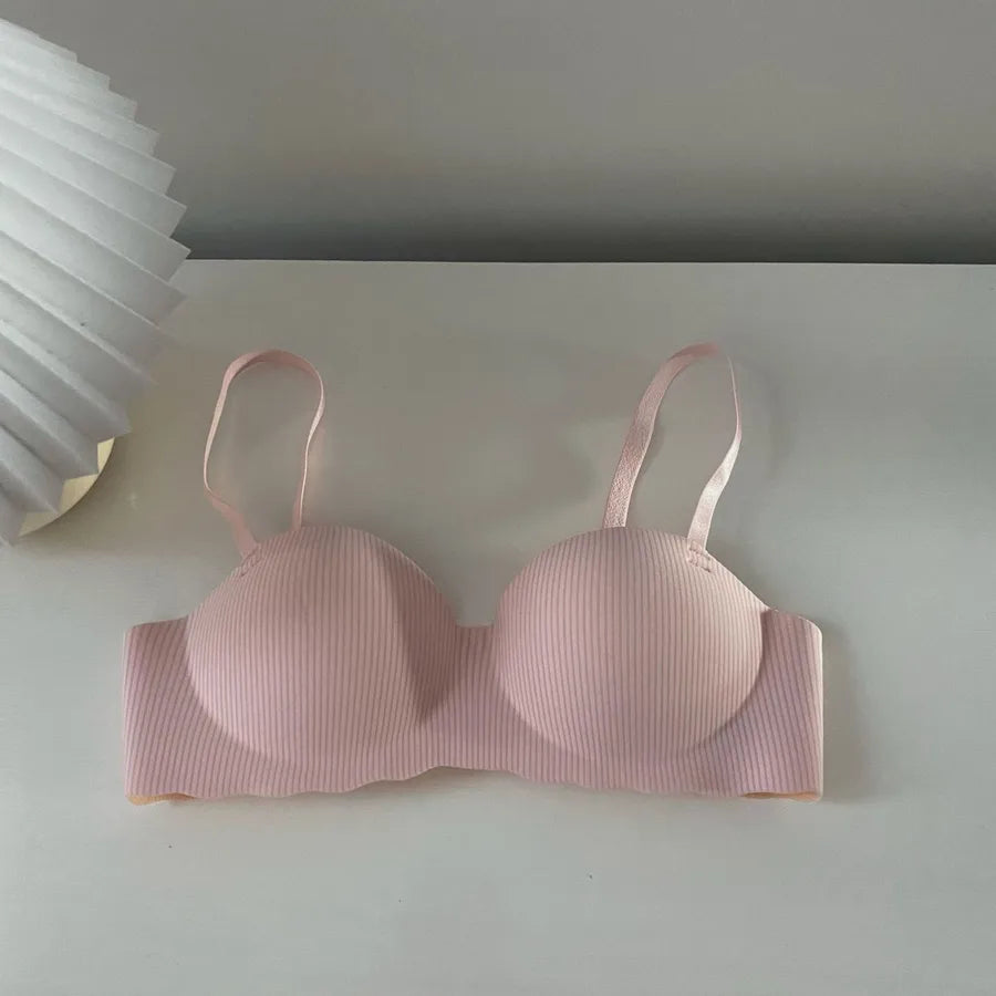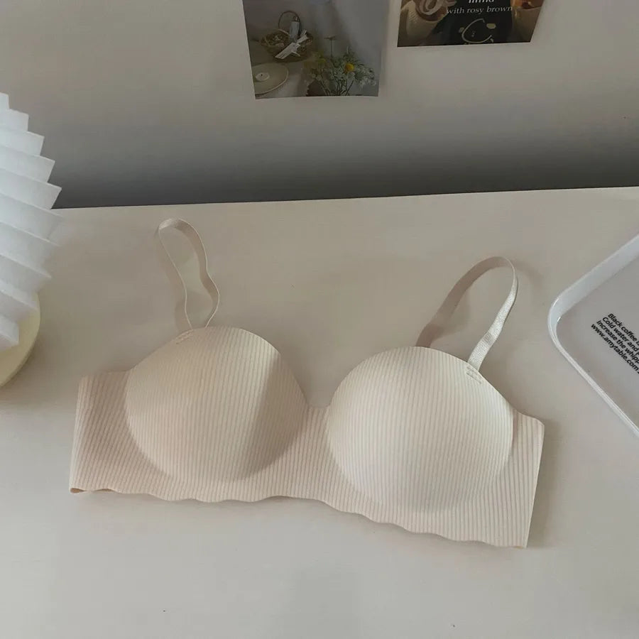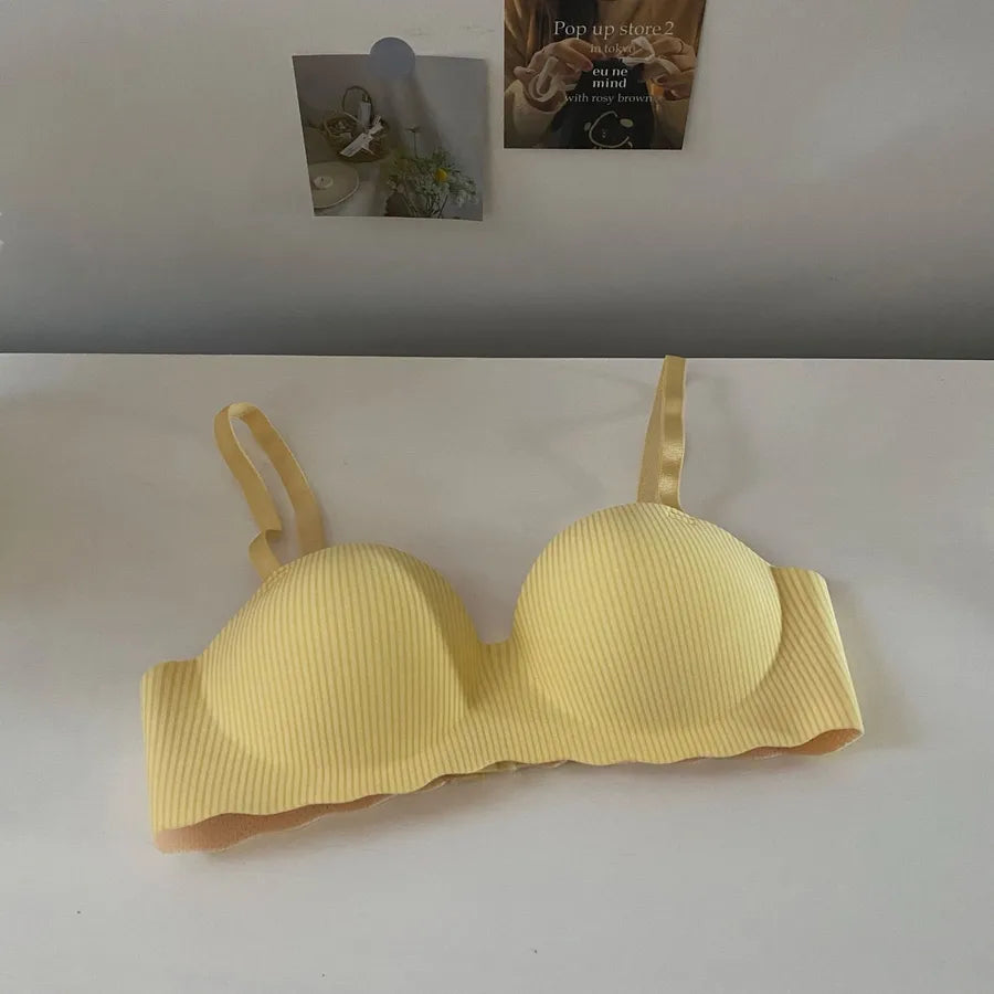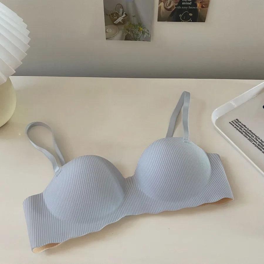 New and New Style Foreign Trade Thin Cocktail Underwear Women's Small Chest Gathered Striped Half Cup Non-Steel Rings Breast Bra