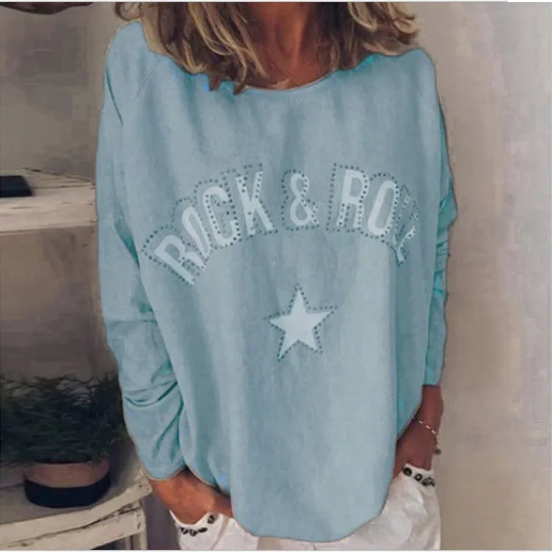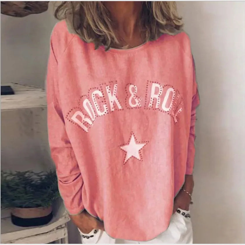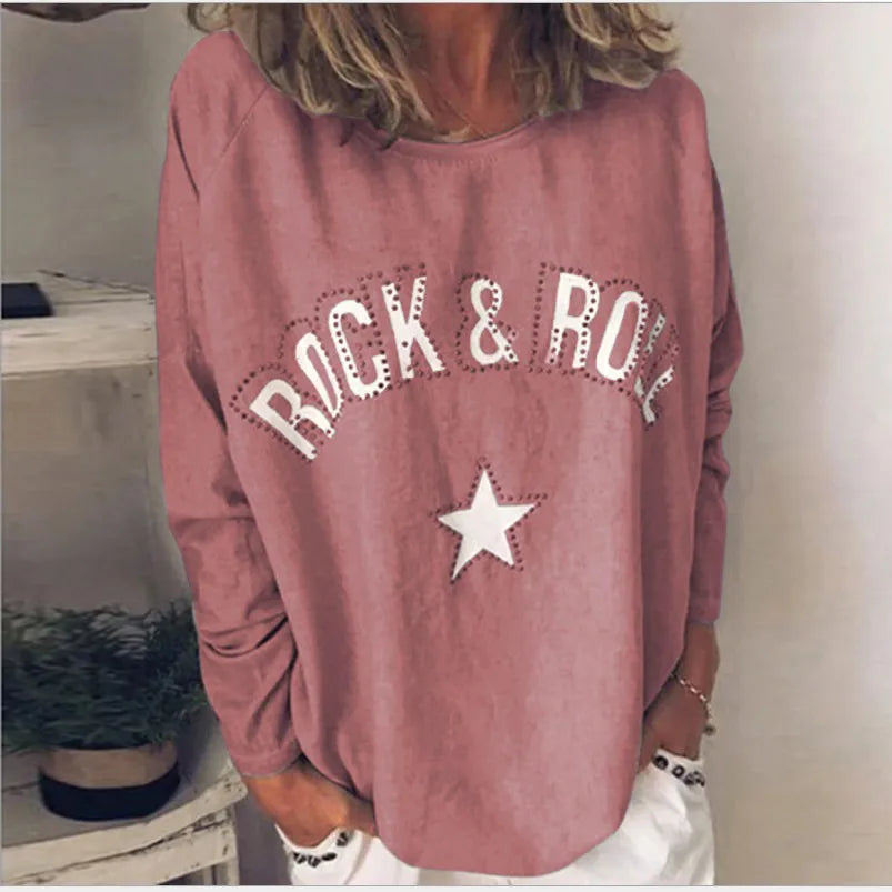 New Autumn Winter Women's T-shirt Printed Diamond Embellished Long Sleeve Round Neck Sweatshirt Casual Style