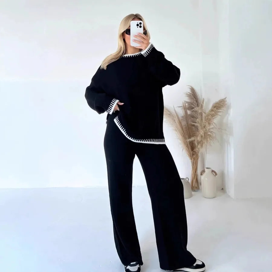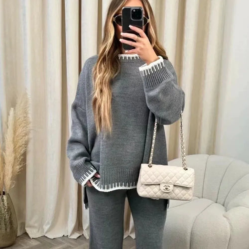 New Ladies Casual Loose Two-Piece Set Fashionable Pure Color Elegant Commute Style Long Sleeve Long Pants Comfortable Wear