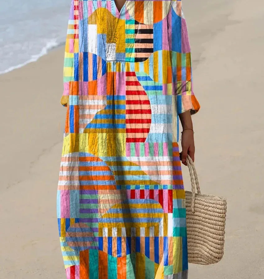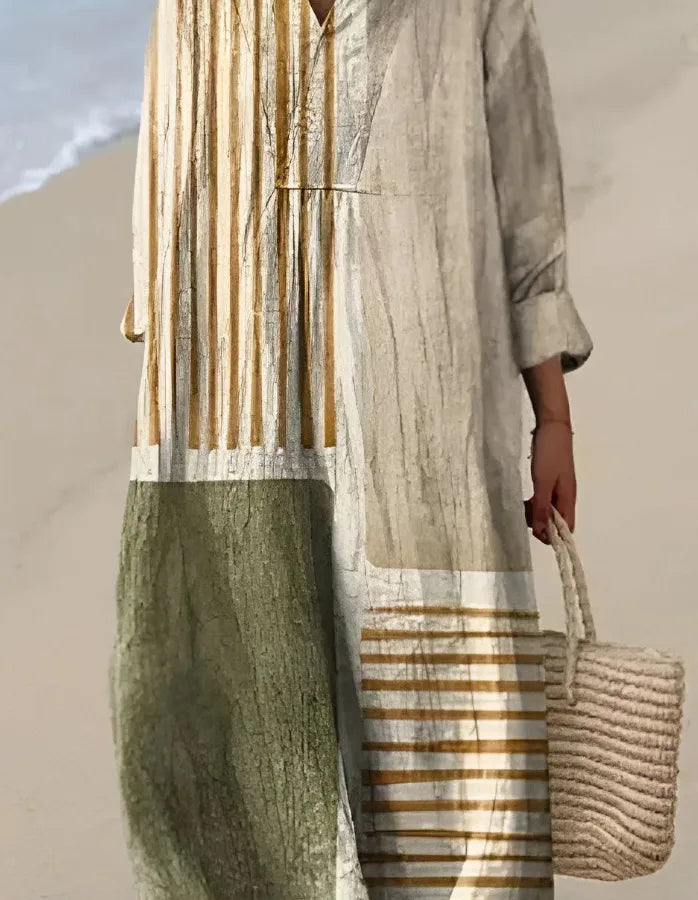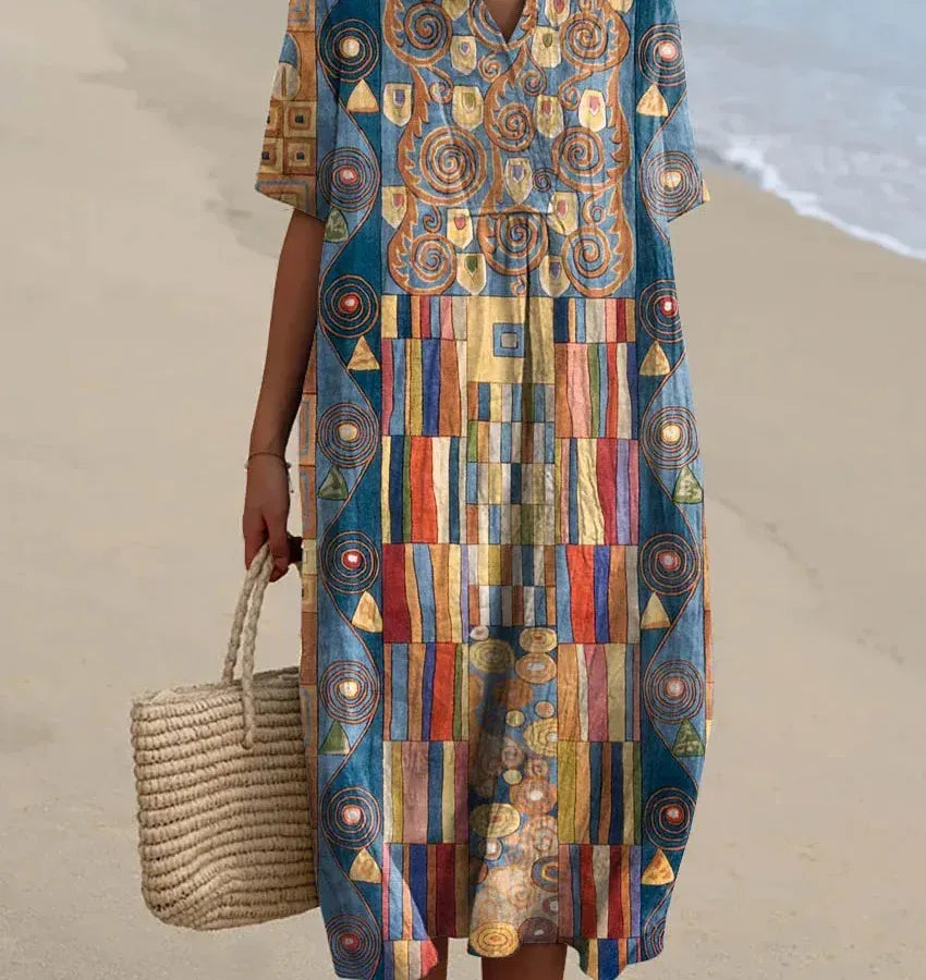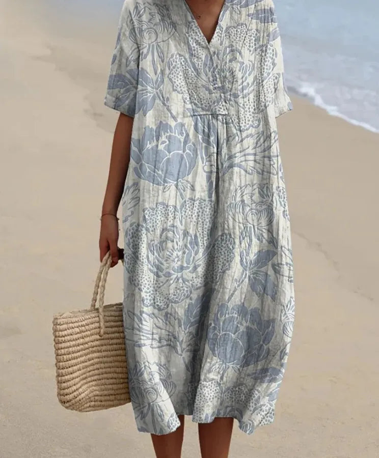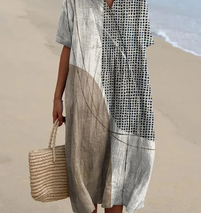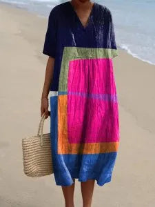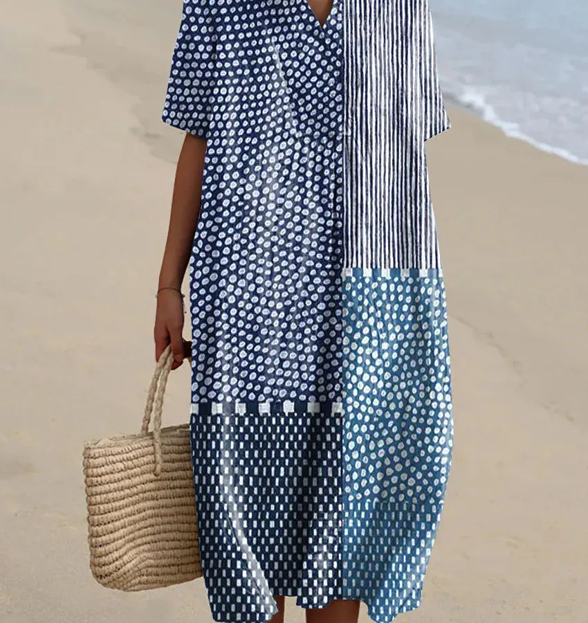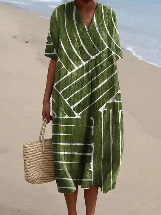 New Large Size Women's Shirt Dress With Pockets Creative Ocean Plant Vacation Style Short Sleeve Casual Ankle-Length Gown