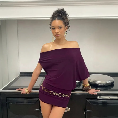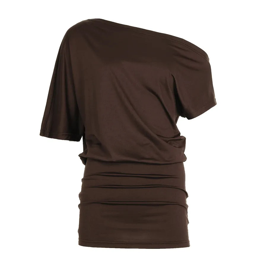 New Mature Elegant Off-Shoulder Two-Way Batwing Solid Color Loose Slimming Irregular Short Draped Dress for Women