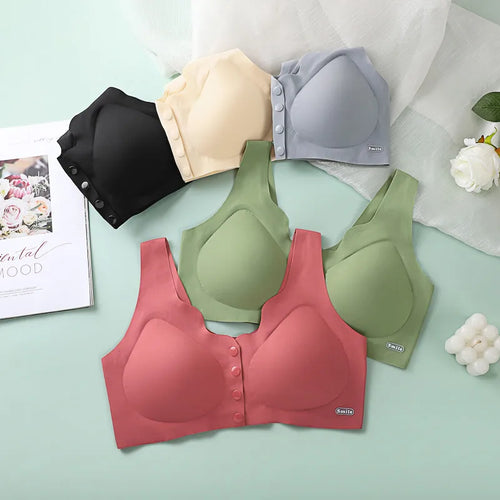 New Wireless Bra Women's Seamless Underwear Anti-Sagging Side Breast Collection Front Opening Breathable Large Size