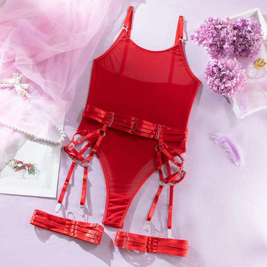 Olena Lingerie hot selling mesh transparent sexy lace stitching sexy three-piece set