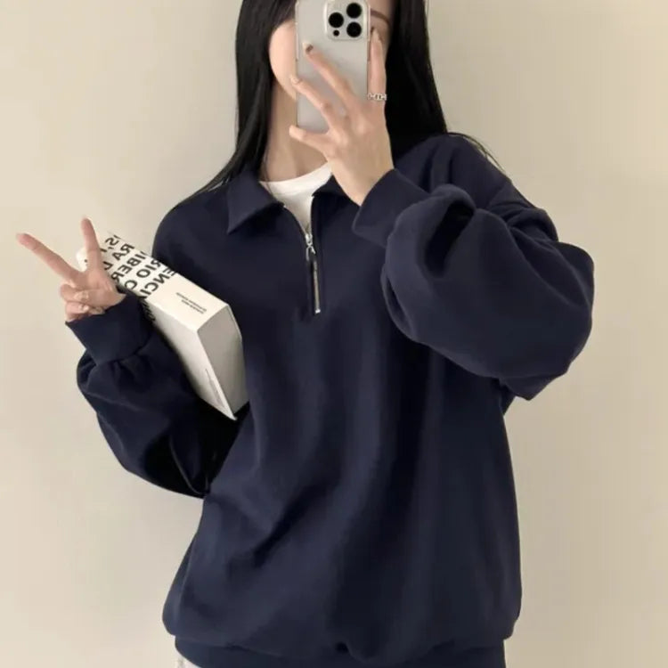 Olive Green Boyfriend Style Half Zipper Neutral Sweatshirt Women Autumn Winter New Lazy Casual Couple Tops Trendy
