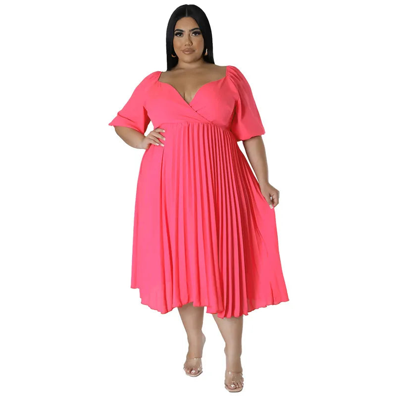 pleated skirt streetwear v neck half sleeve solid color midi dress daily