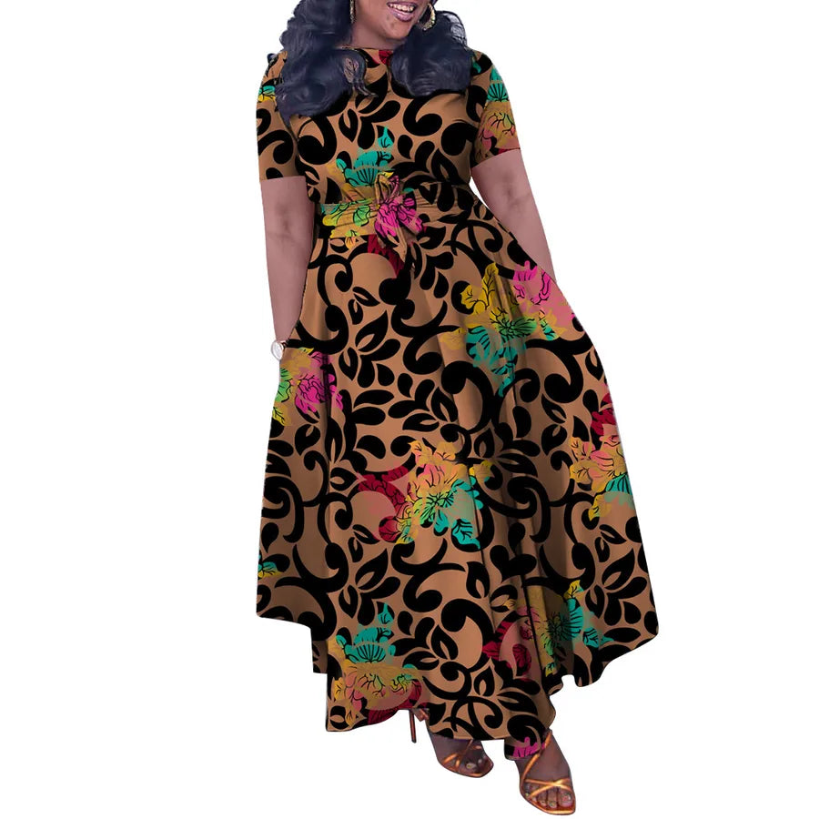 Princess Dress Casual Vacation Round Neck Printing Contrast Binding Short Sleeve Printing Maxi Long Dress Holiday Daily