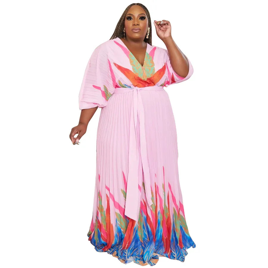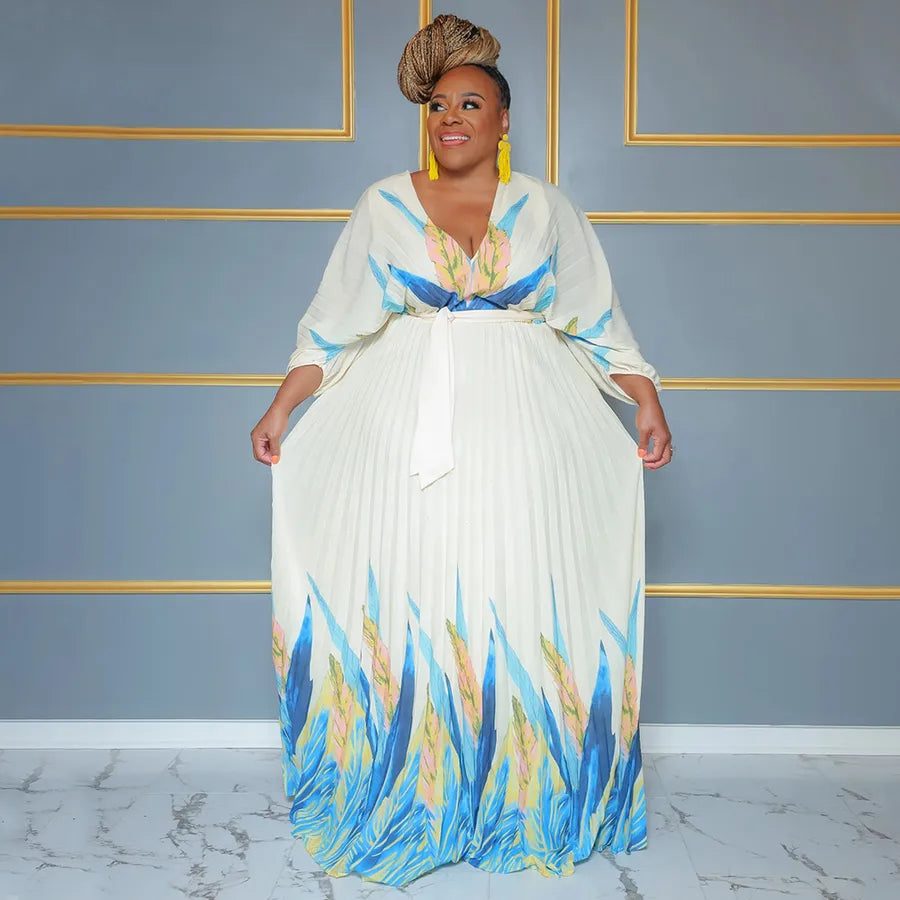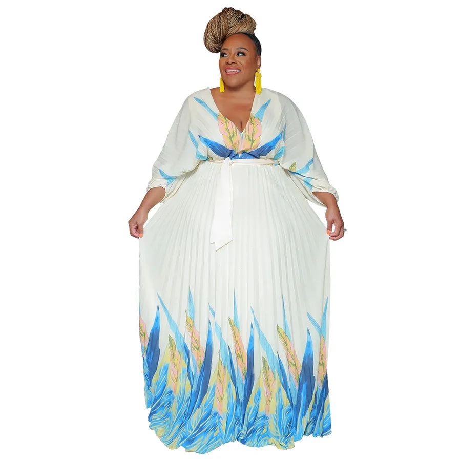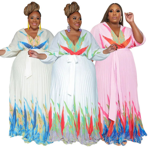 Regular Dress Elegant V Neck Printing Long Sleeve Printing Maxi Long Dress Daily