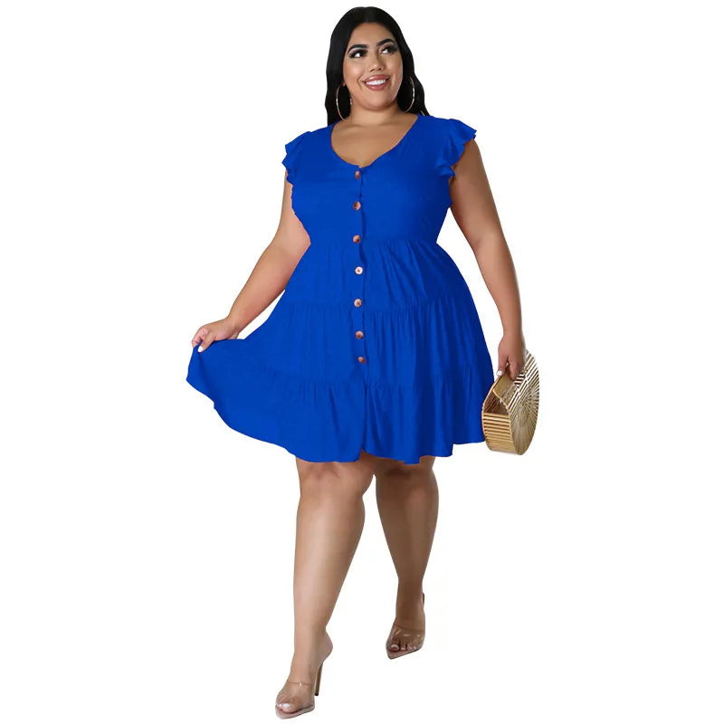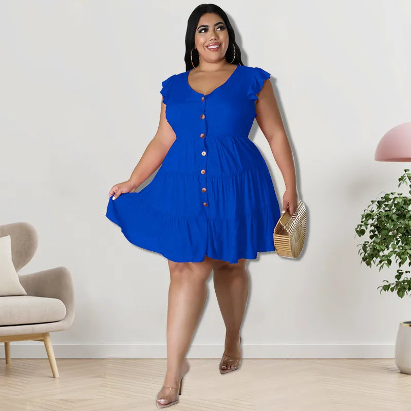 regular dress streetwear v neck button short sleeve solid color knee-length daily