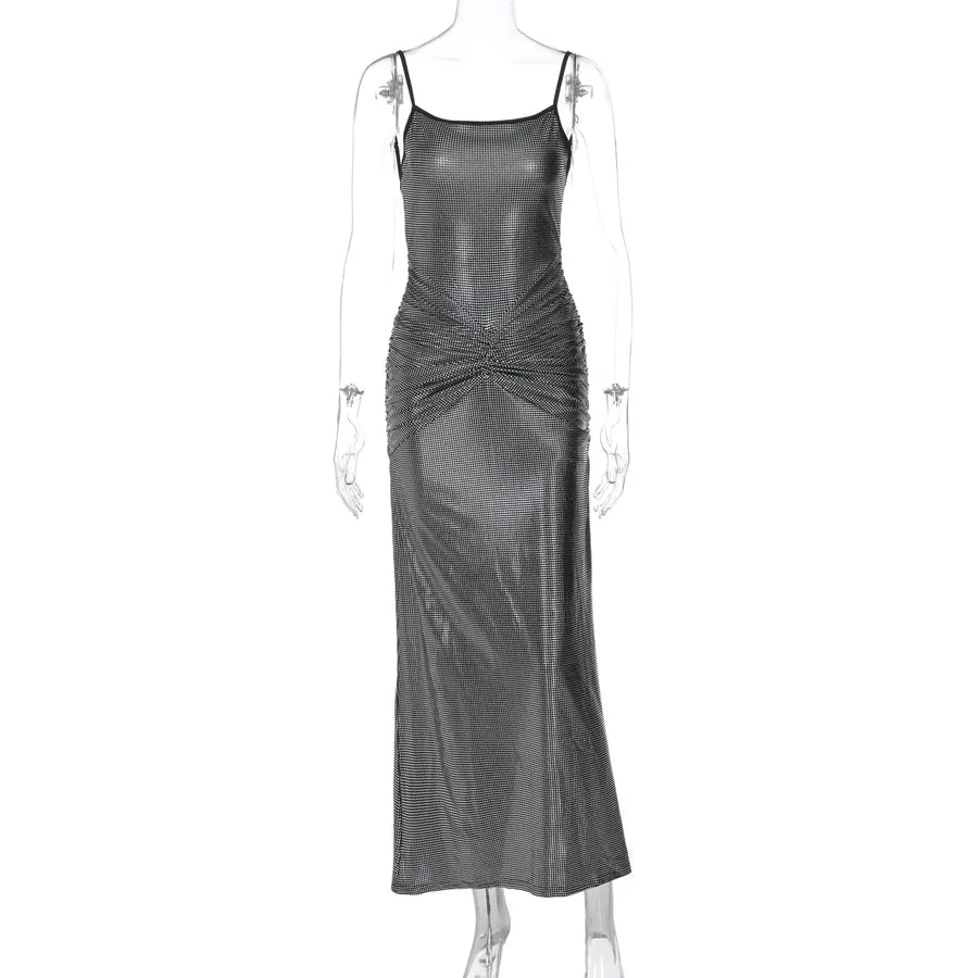 Sexy Backless Embossed Gold Slim Fit European Style Summer New Women's Dress Sling Dress Pure Color Nylon Polyester Milk Silk