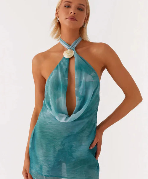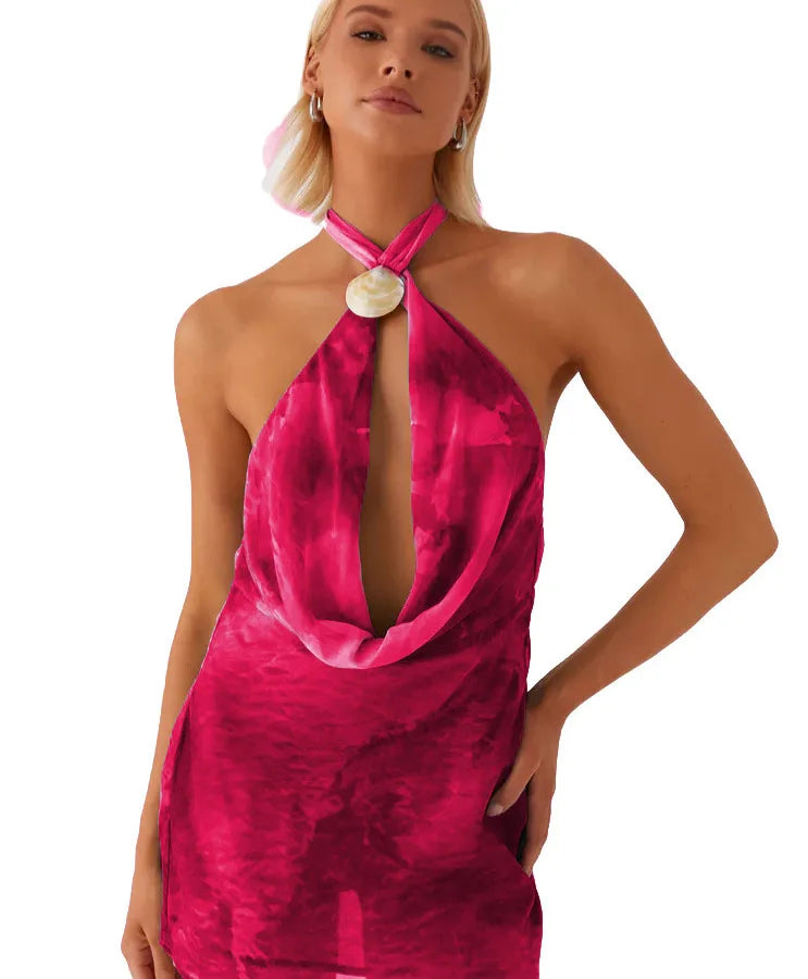 Sexy Backless Printed Dress With Hanging Neck Strap Style Women's Fashion Without Sleeve Evening Gown