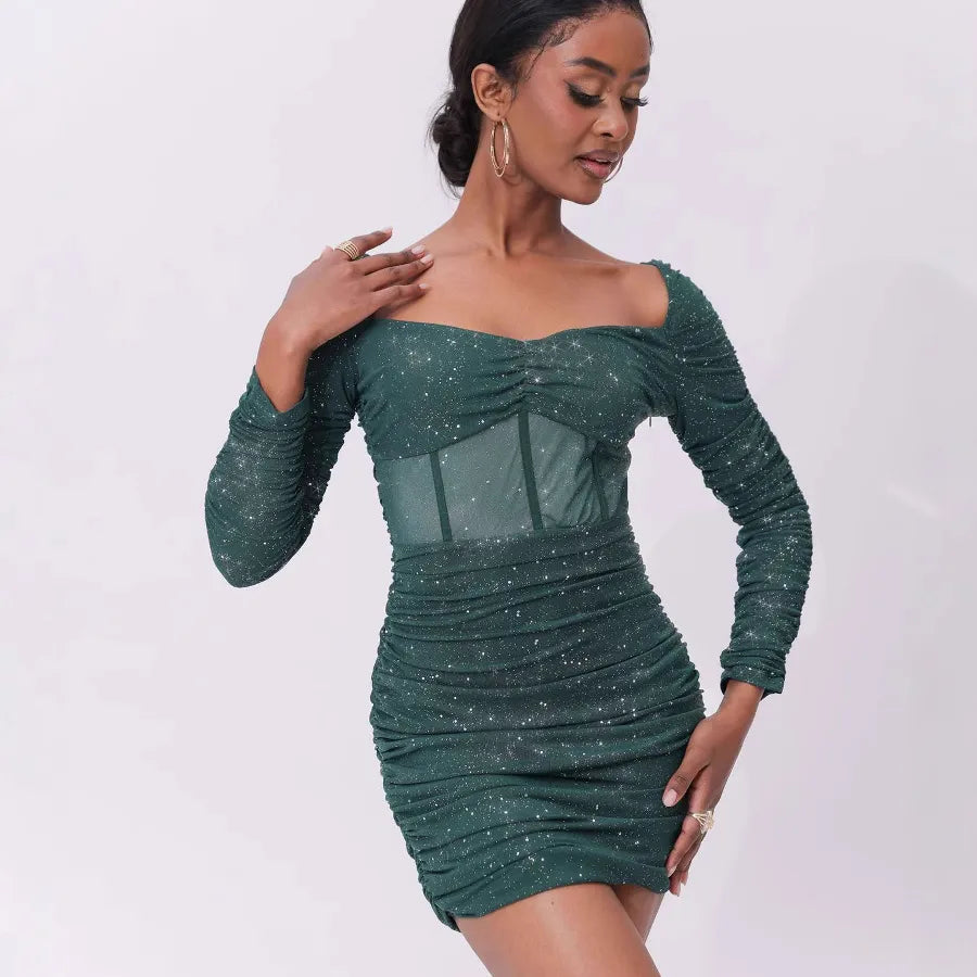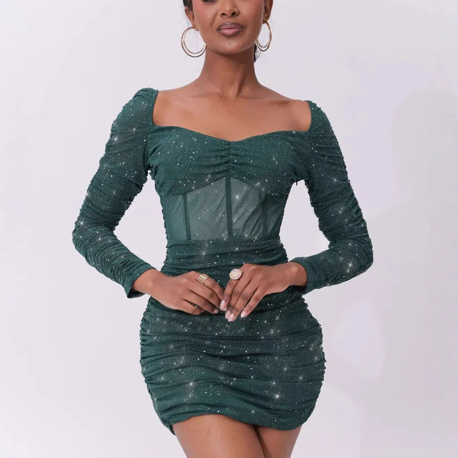Sexy Fashionable Style Women's Dress Slim Fit Sequin Trendy High-End Feeling Nine Sleeve Length Dress