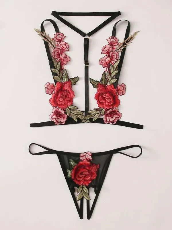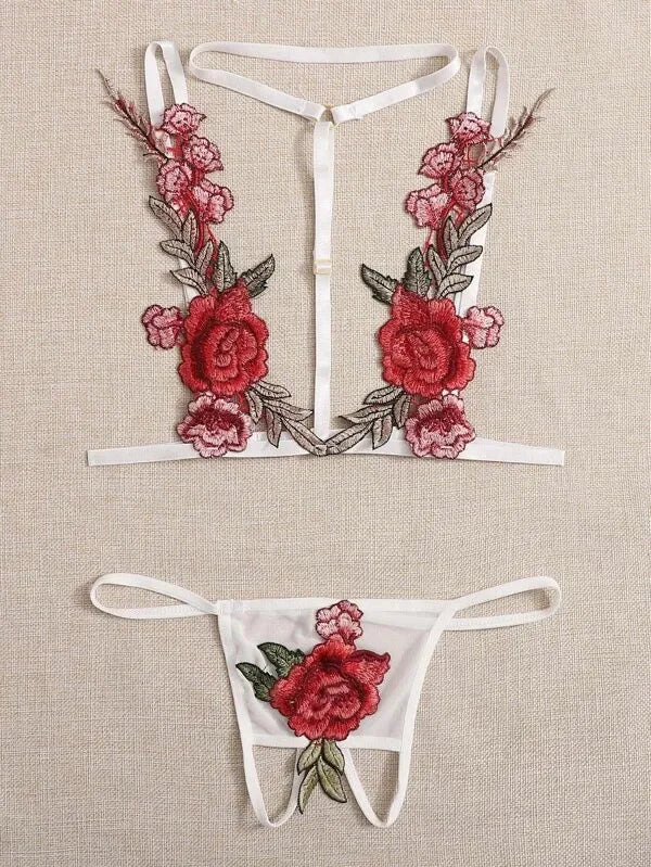 sexy flower sexy lingerie sets party ultra-thin low waist thong sexy lingerie