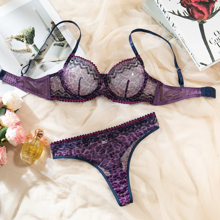 Sexy French Style Comfortable Gathered Large Chest Illusory Basic See-through Set Women's Underwear Polyester Lace Net Style