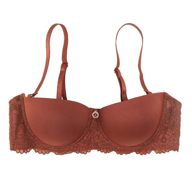 Sexy Lace Edge Smooth Underwear Small Chest Gathered With Steel Ring Anti-Sagging Comfortable Breathable Bra For Women