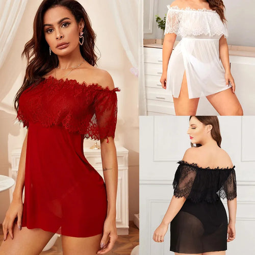 sexy lingerie new large size sexy one-shoulder dress gauze perspective oversized temptation siamese nightdress wholesale nihaodropshipping