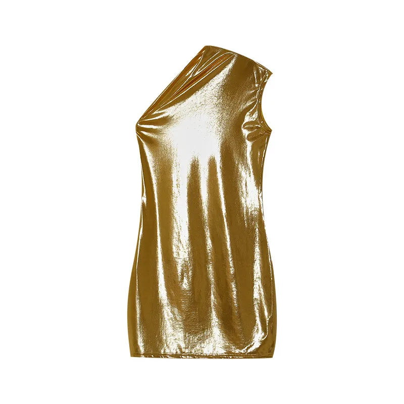 Sexy Pure Color Asymmetrical Shoulder Sleeveless Bodycon Dress Style Women's Fashion Spring New Arrival