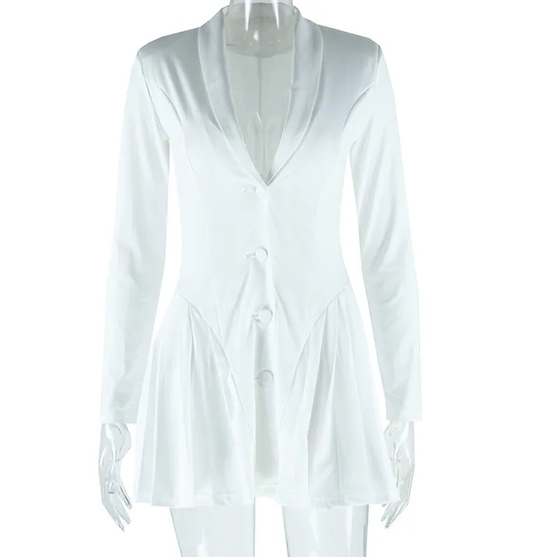 Sexy Pure Color Single Button Pleated Long Sleeve Deep V Dress European Style Street Fashion High Waist A-Line Dress