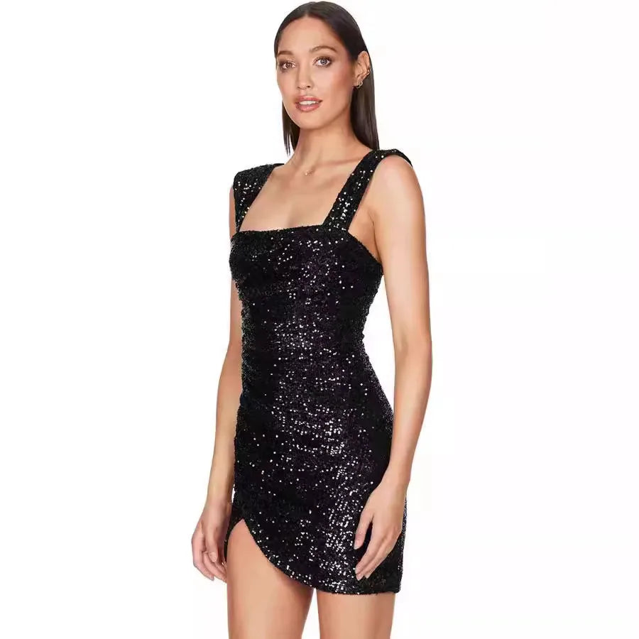 Sexy Sequin Bodycon Dress Style New Arrival Mini Skirt Design Polyester Fabric Sleeveless Neckline Options