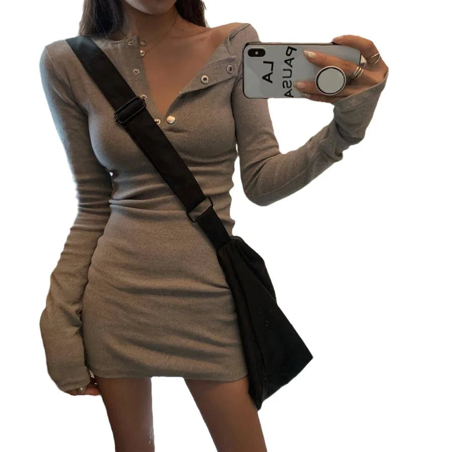 Sexy Slim Long Sleeve Bodycon Dress Women's Autumn New Sexy Tight Nightclub Pure Color Trendy Midi Party Clubbing Dress