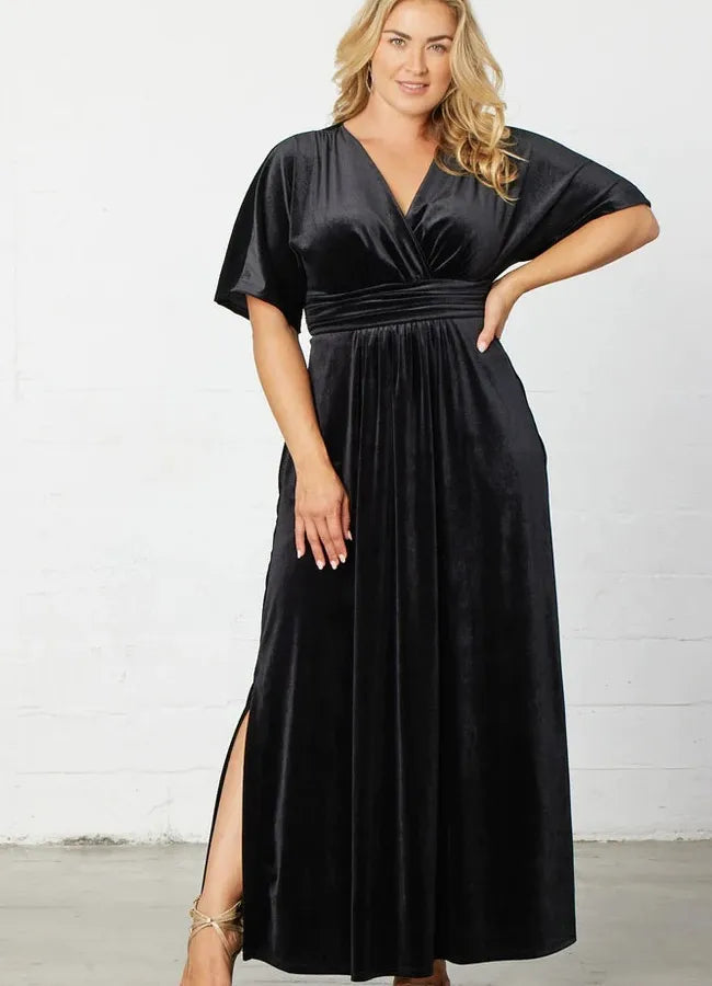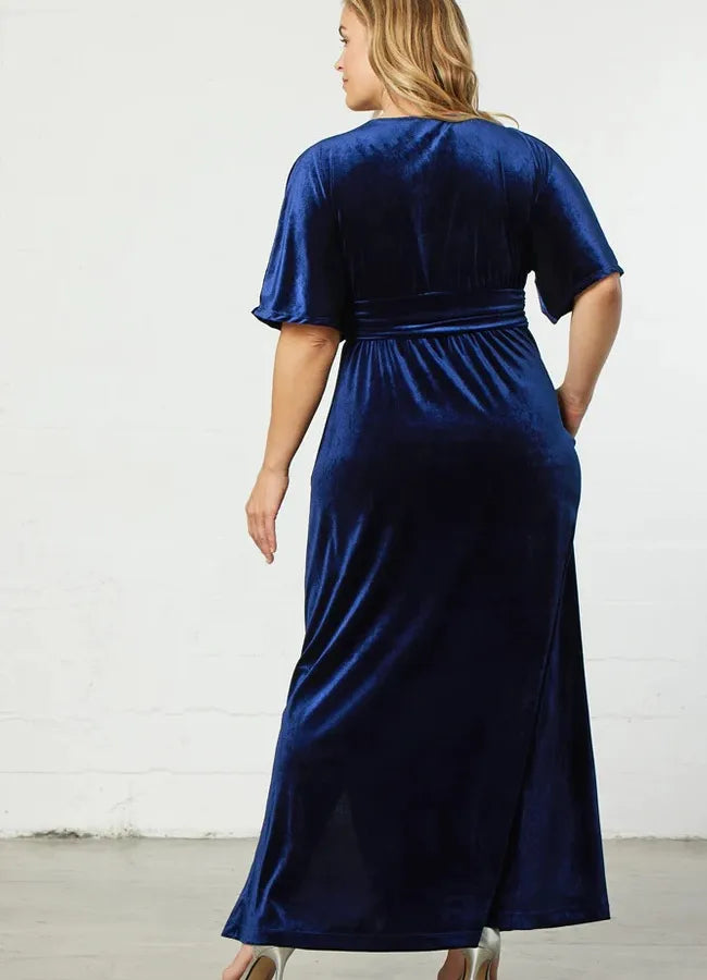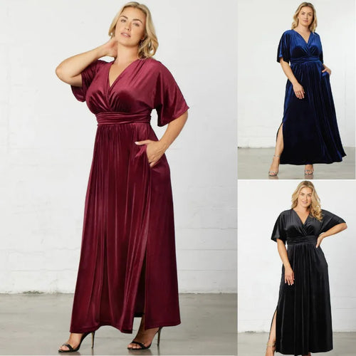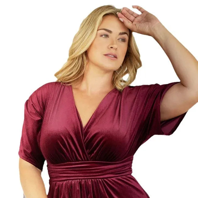 Sheath Dress Elegant V Neck Pleated Half Sleeve Solid Color Maxi Long Dress Holiday Cocktail Party