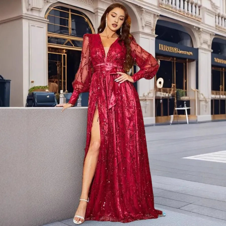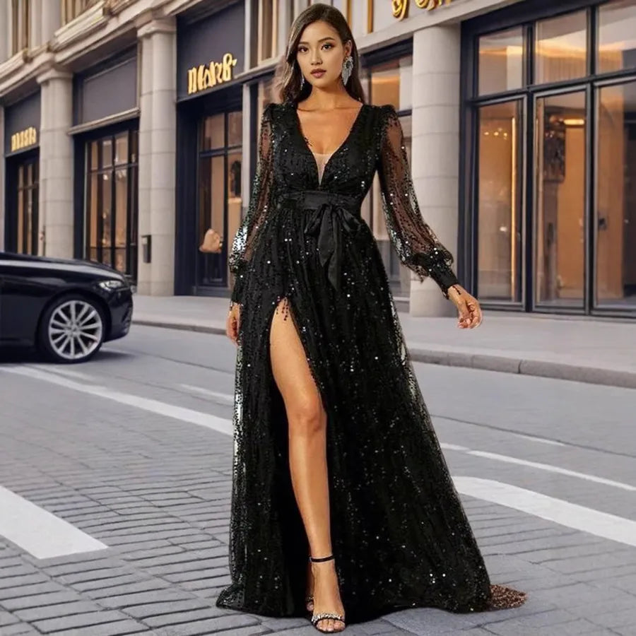 Shiny Sequin Long Skirt Dress For Women V-Neck Sleeveless Midi Dress Glitter Mesh Gown Elegant Commute Urban Style Maxi Skirt