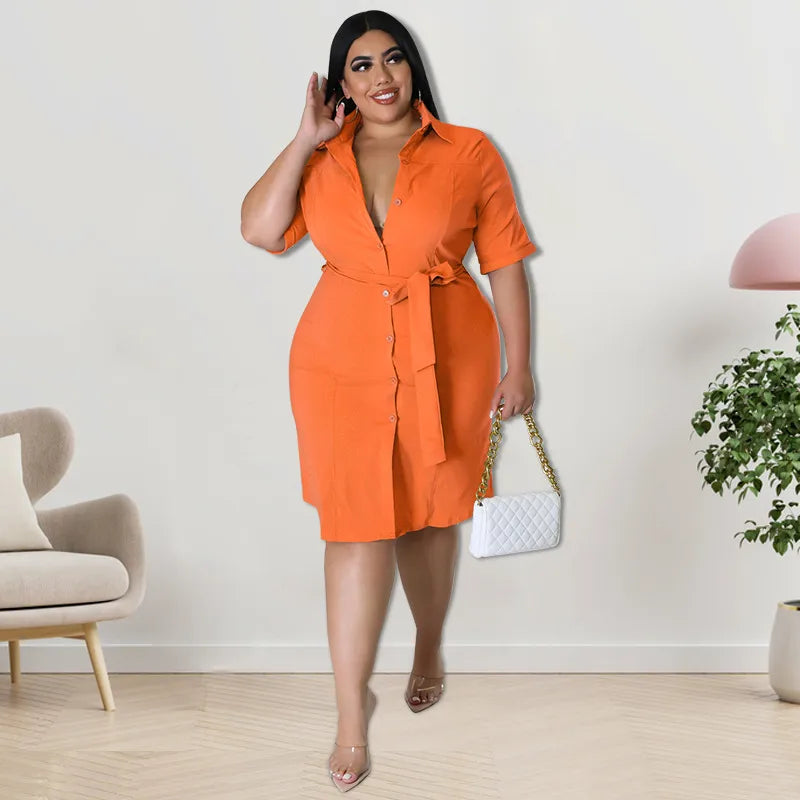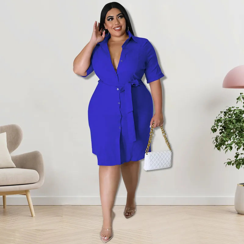 shirt dress casual shirt collar button straps short sleeve solid color knee-length daily