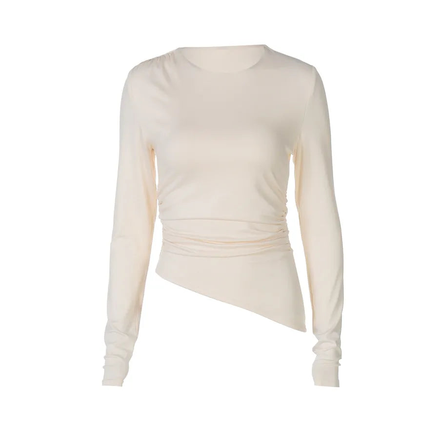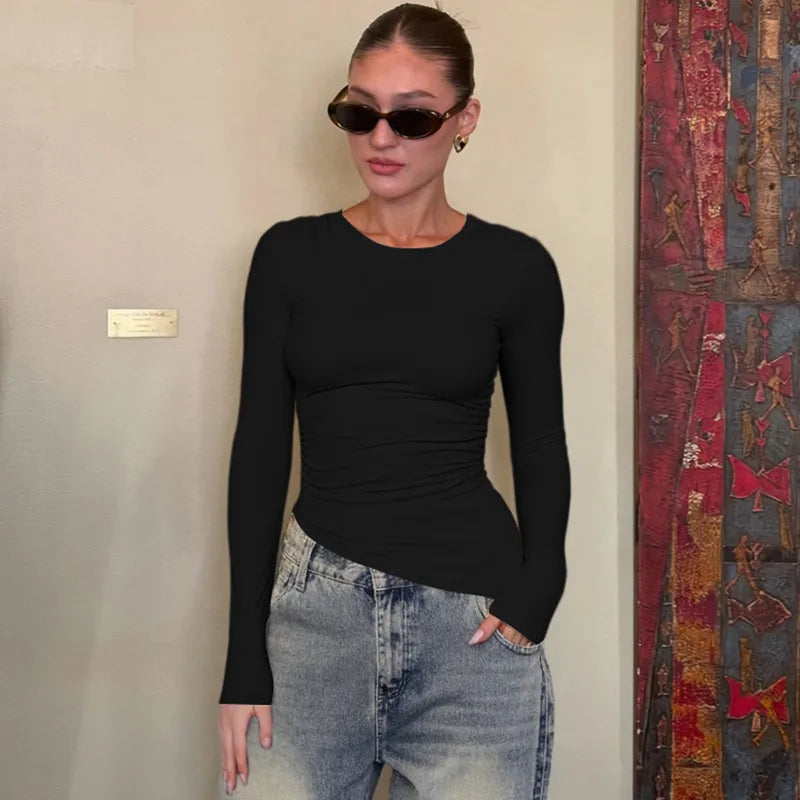 Slim Fit Long Sleeve Round Neck T-Shirt Women's Fashionable Summer New Style Side Slant Design European And Street High Street