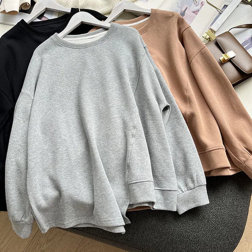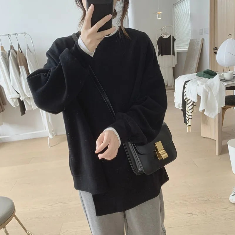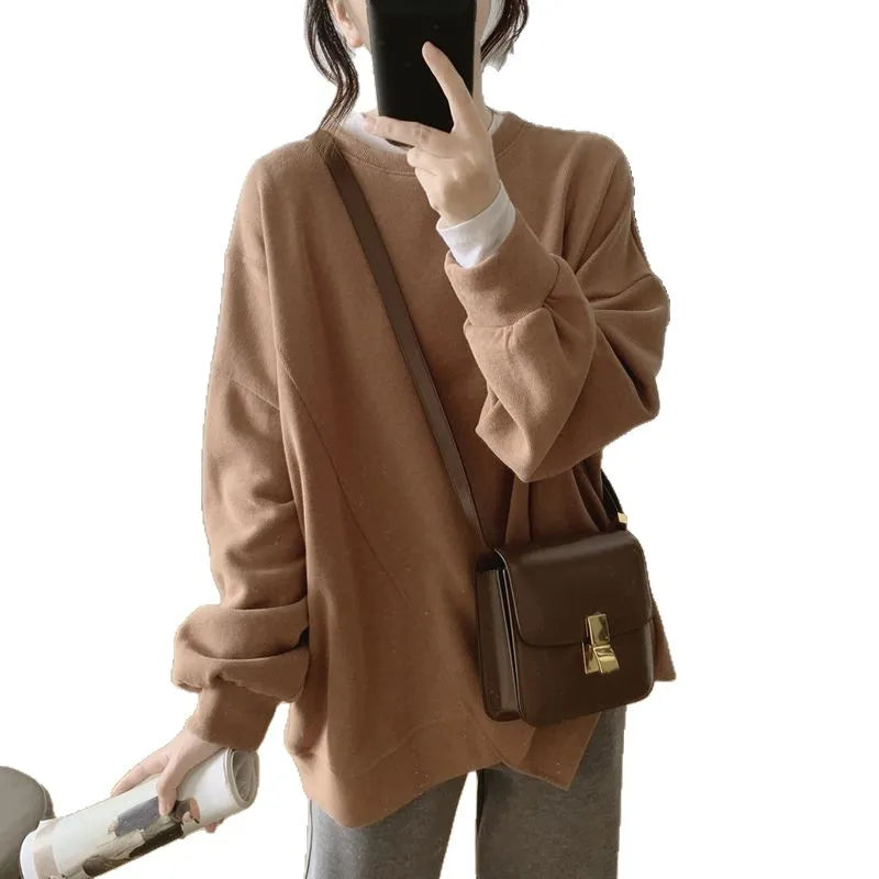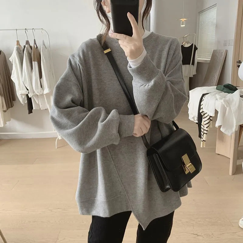 Slimming Effectiveness Oversized Hoodie Women's Round Neck Long Sleeve Casual Top Asymmetrical Design Spring Autumn New Style