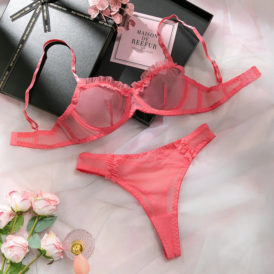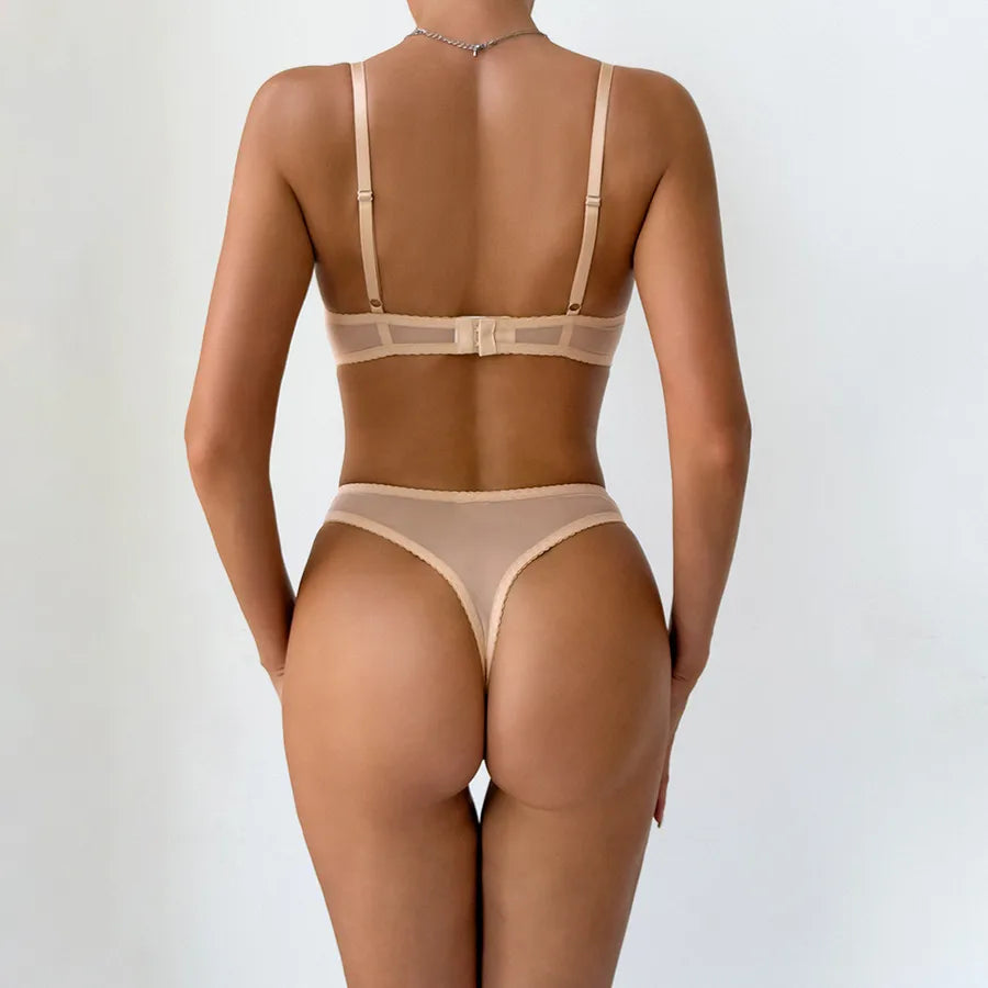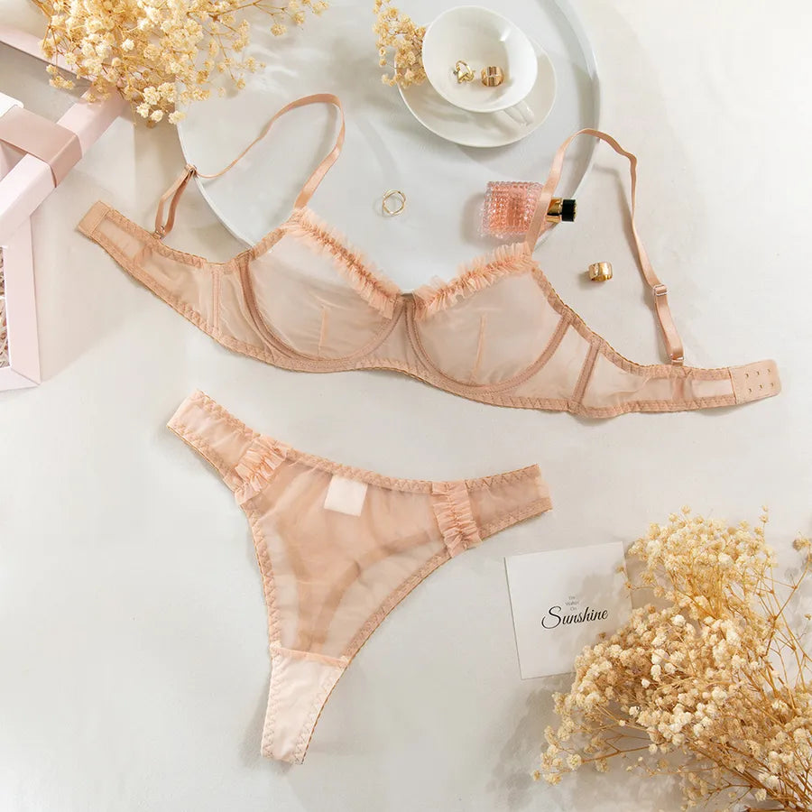Solid Color Sexy Gather Breathable Bra&Panty Set