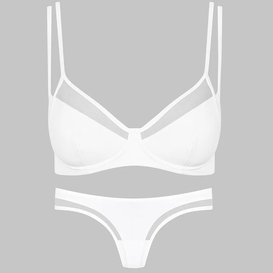 Solid Color Ultra-thin Sexy Breathable V-Opening Bra&Panty Set