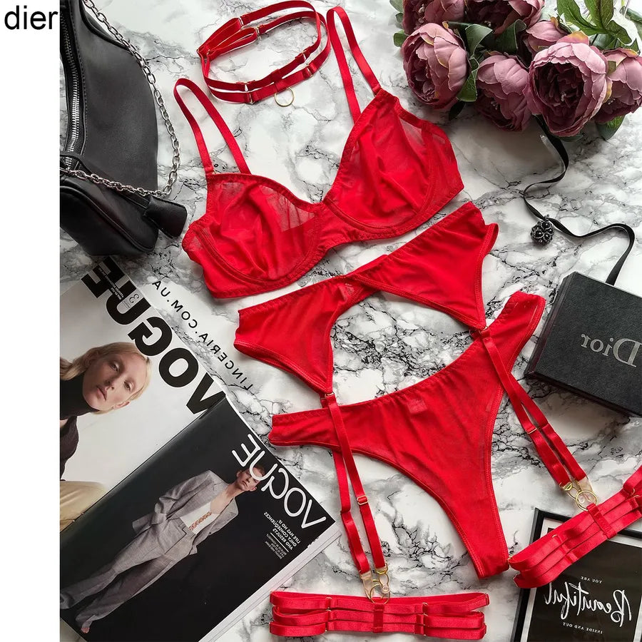 solid color underwire bra sexy backless high waist briefs sexy lingerie