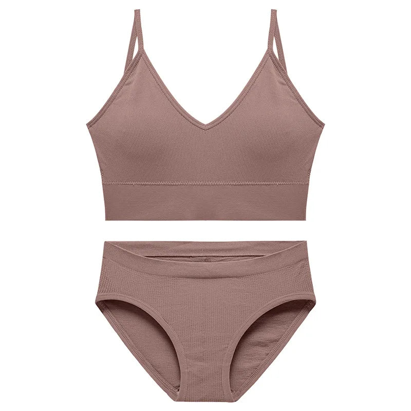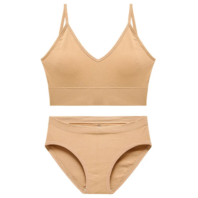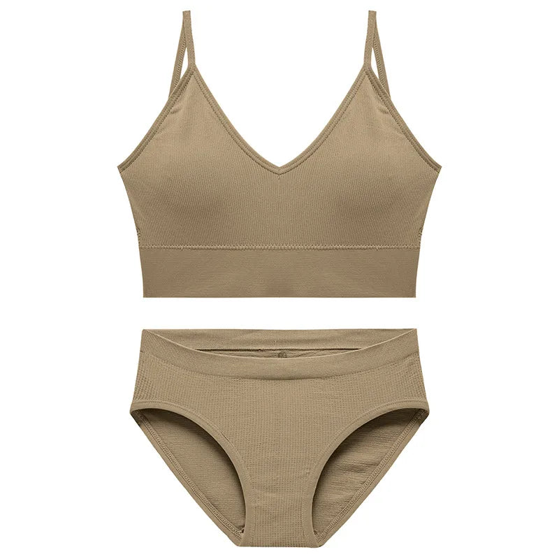 Solid Color Vest Seamless Gather Breathable Bra set