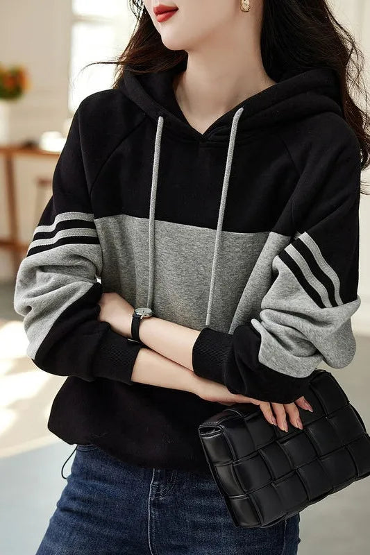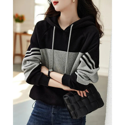 Spring Autumn New Style Women's Hoodie Casual Loose Fashionable Long Sleeve Polyester Blend Patchwork Color Block Design