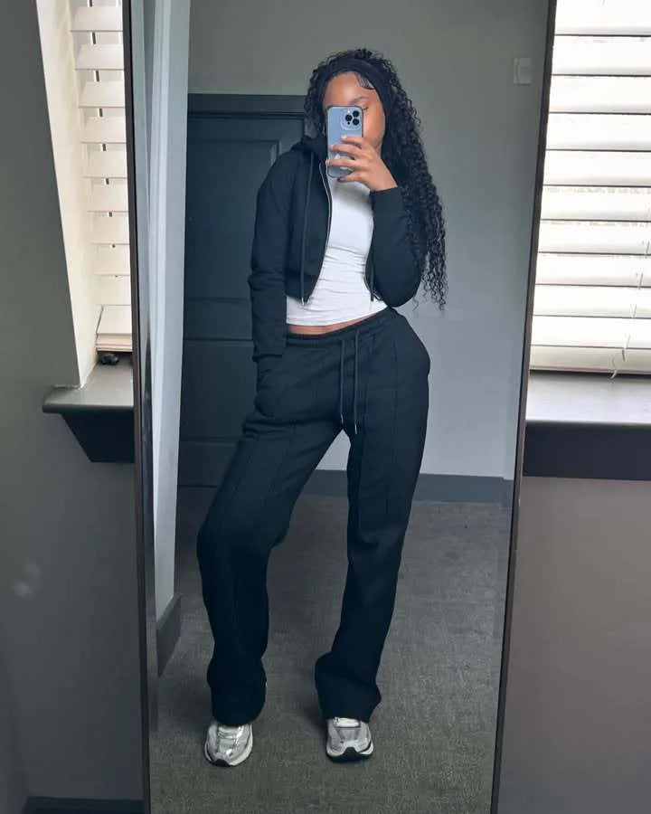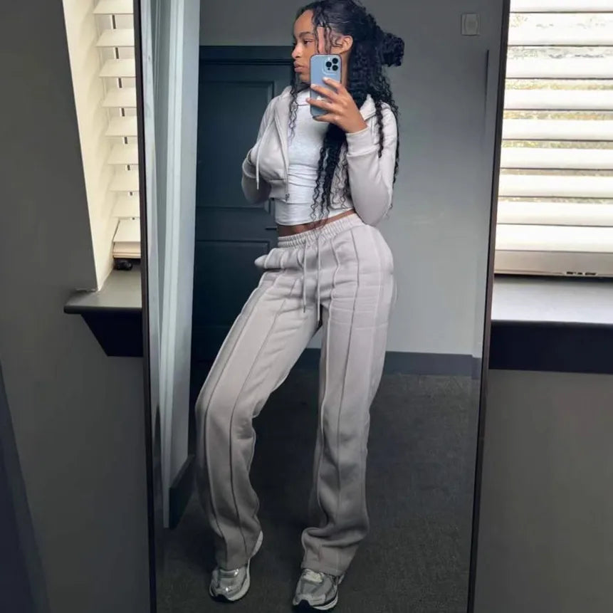Spring Autumn New Women's Fashionable Zipper Hooded Sweatshirt Pants Set Street Style Casual Outfit Polyester Long Sleeve