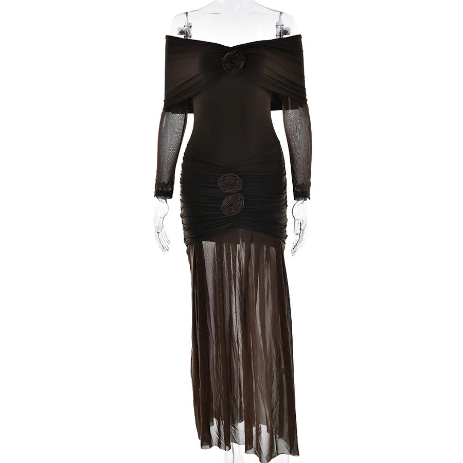 Spring New Style Sexy Strapless Long Dress Fashionable Pleated Patchwork One Shoulder Polyester Net Milk Silk Bodycon Dress