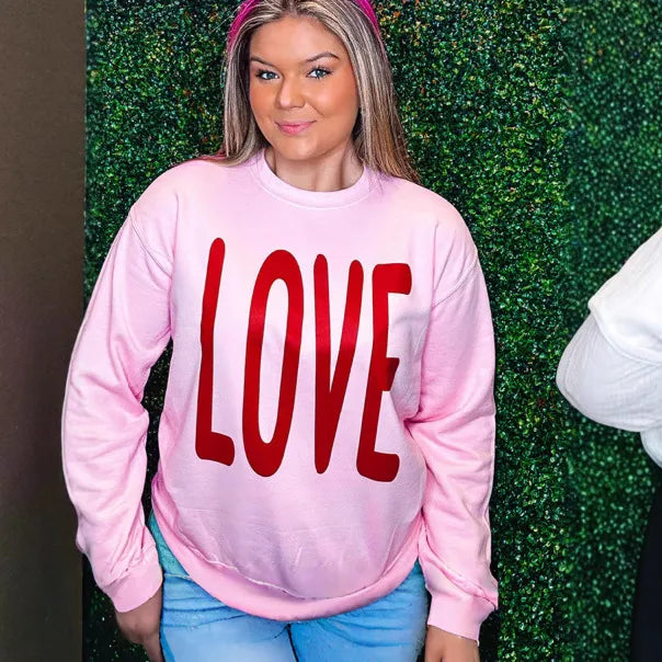 Spring Women's Long Sleeve Heart Print Sweatshirt Casual Loose Fit Polyester Round Neck Pullover Fashion European Style