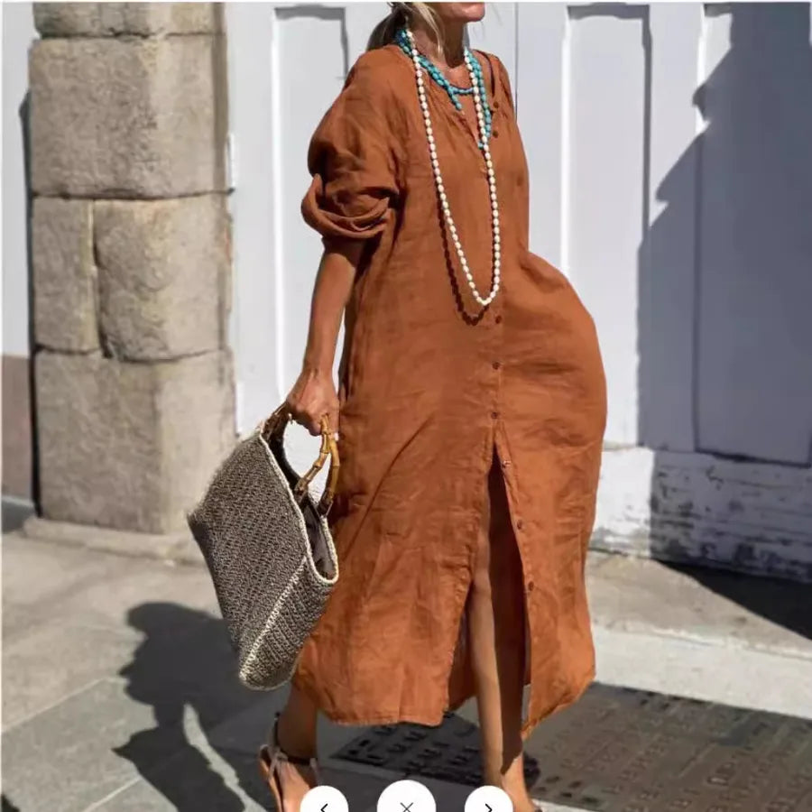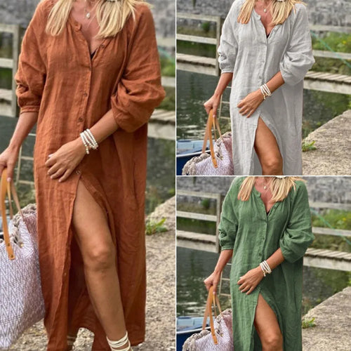 Street Style Cotton Linen Long Sleeve Button Up Open Cardigan Long Shirt Simple Loose Fit Women's Fashion New Arrival