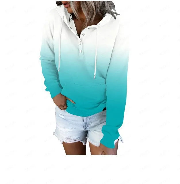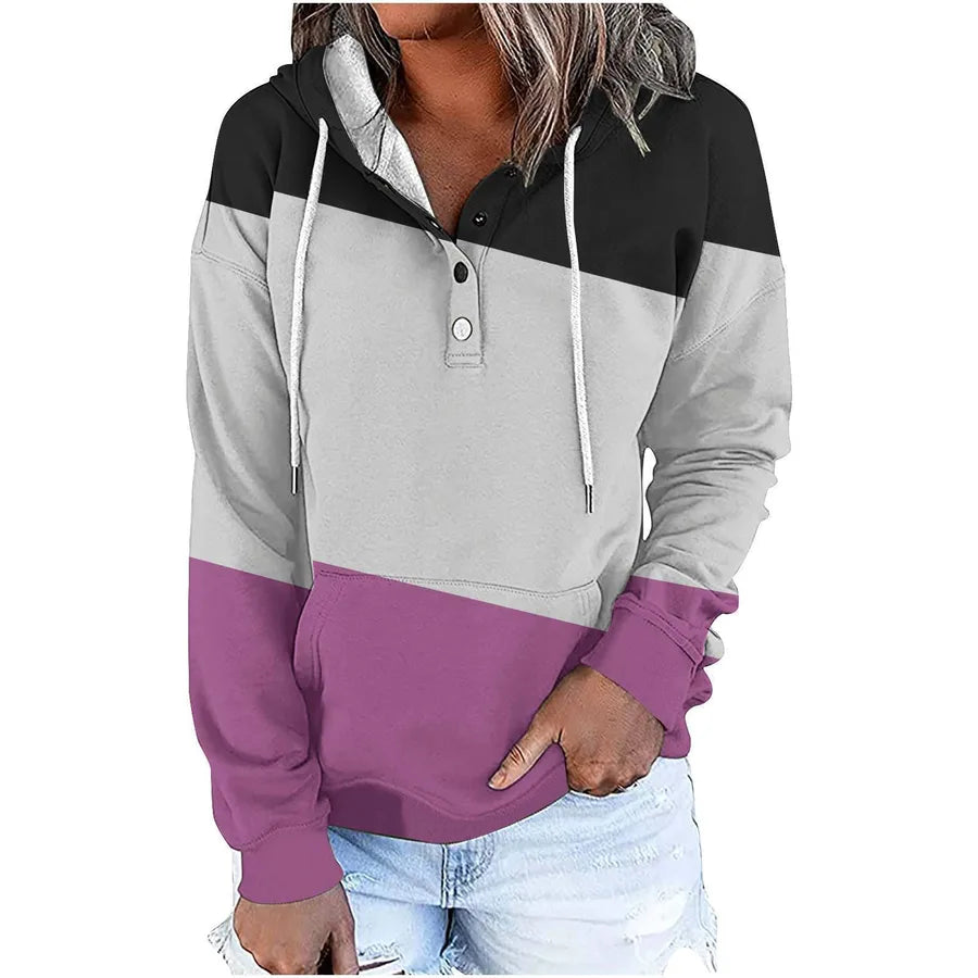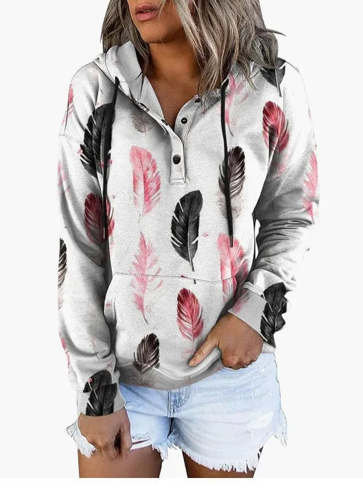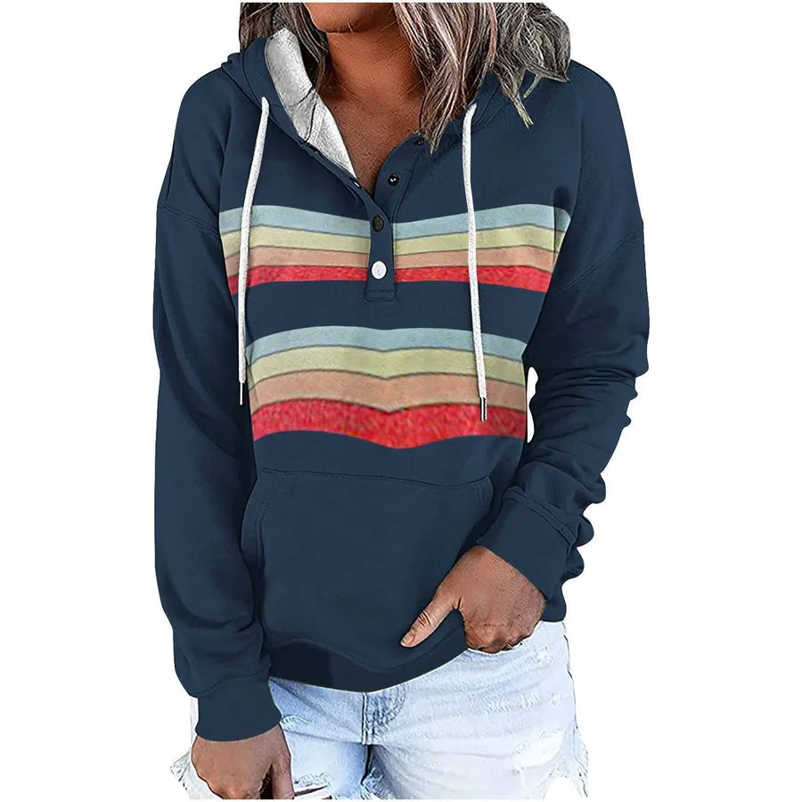 Street Style Women's Long Sleeve Polo Neck Sweatshirt 3D Geometric Print Casual Sportswear Ladies Hoodie Loose Fit Comfortable