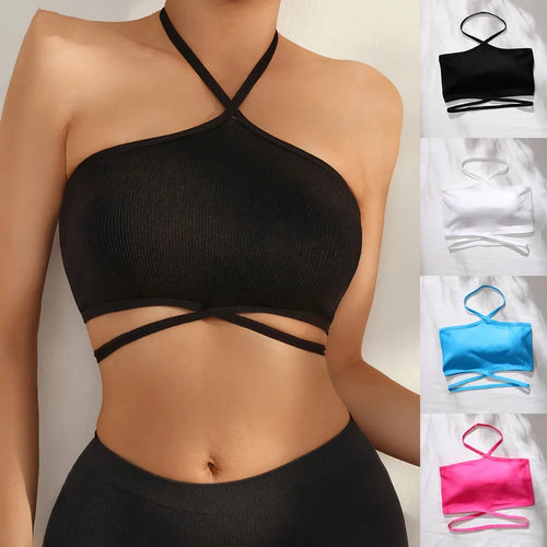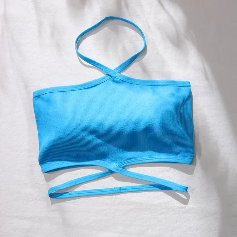 Stripe Hanging Neck Type Back Beauty Breathable Anti-seam Bra
