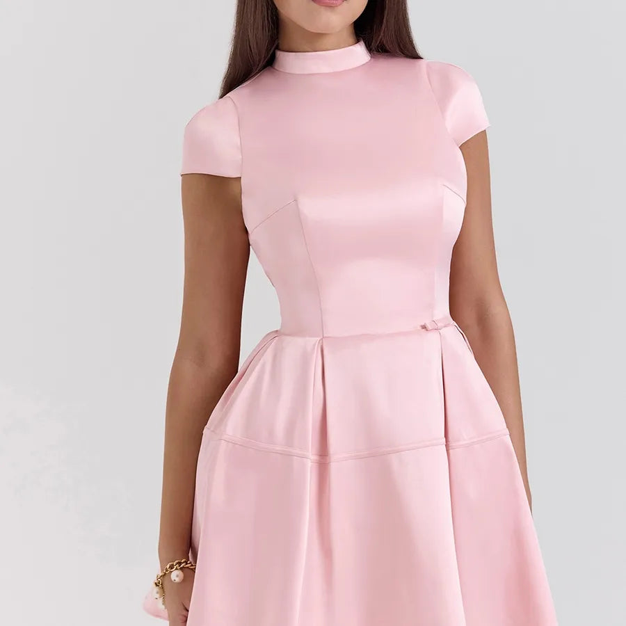 Summer 2025 New European Pure Color Round Neck Sleeveless Gentle Fashion Backless Short Skirt High Waist A-Line Dress
