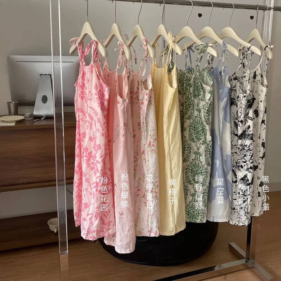 Summer Cloud Cotton Strap Dress With Chest Pad Loose Nightgown Home Clothes Floral Print Thin Home Printed Sweet Women's Pyjamas