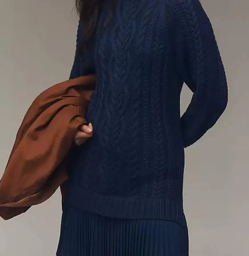 Sweet Knitted Mini Dress With Pleated Neck Design And Long Sleeves Fashionable Patchwork Style Pure Color Wool And Viscose Fabric