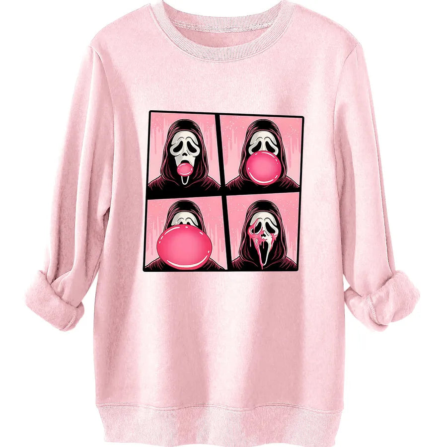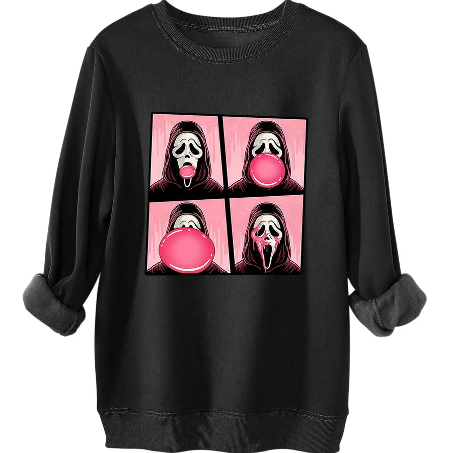 Thickened Warmth Ladies' Sweatshirt Funny Personality Print Street Style Round Neck Long Sleeve Loose Fit Cotton Polyester