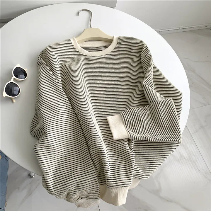 Tie-Dye Striped Long Sleeve Crew Neck Sweatshirt Women's Textured Stripe Shirt Round Neck New Style Student Jacket Sweatshirt