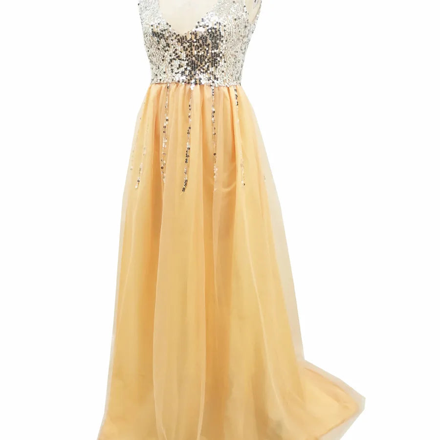 Trendy V-Neck Long Evening Gown With Beads Princess Style Fresh Sweet Polyester Fabric No Sleeve Irregular Skirt Dress
