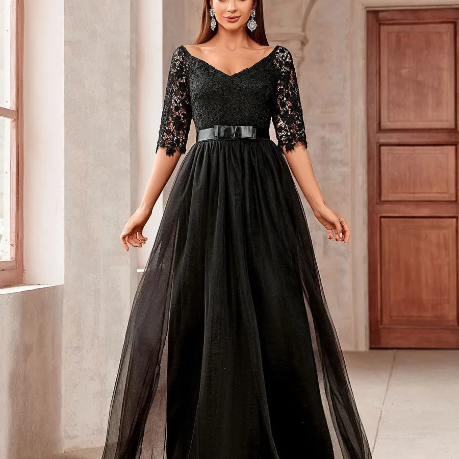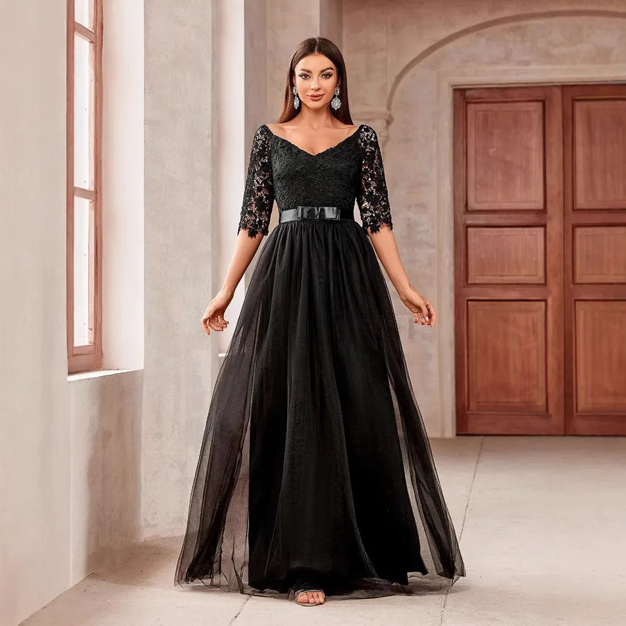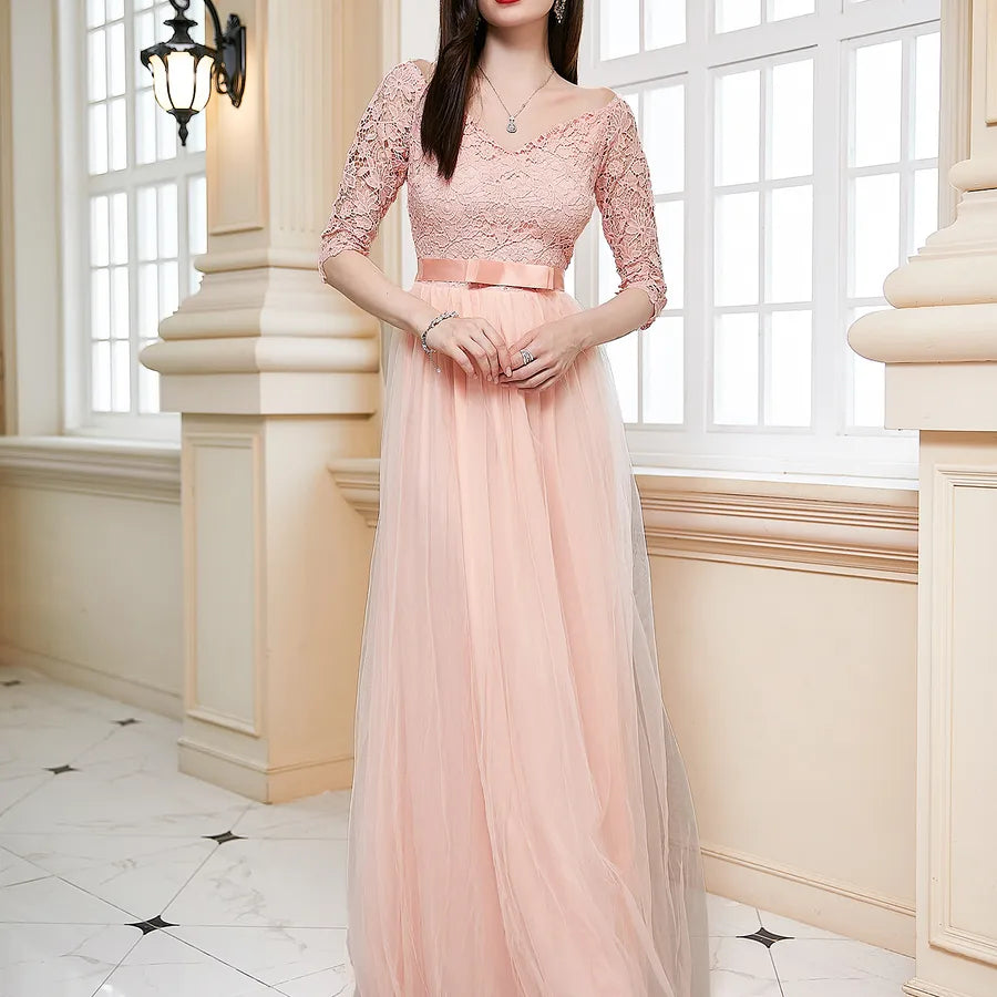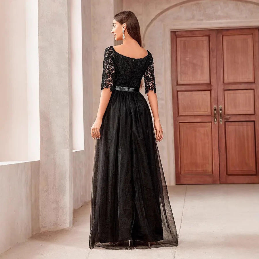 Wholesale Elegant Zipper Solid Color Adult Ceremony off-Shoulder Half Sleeve Formal Dress/Evening Dress