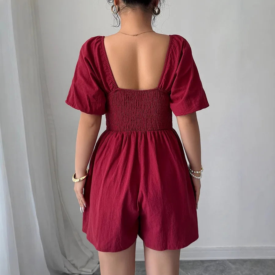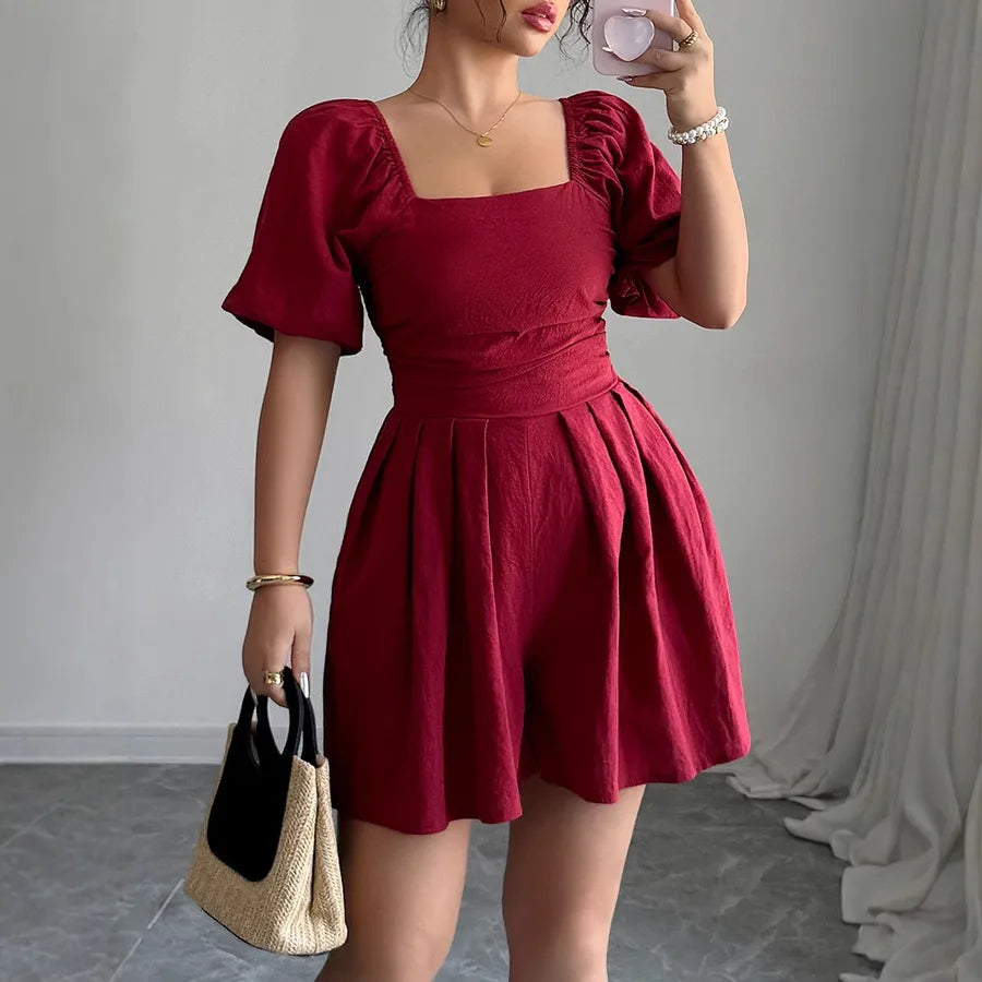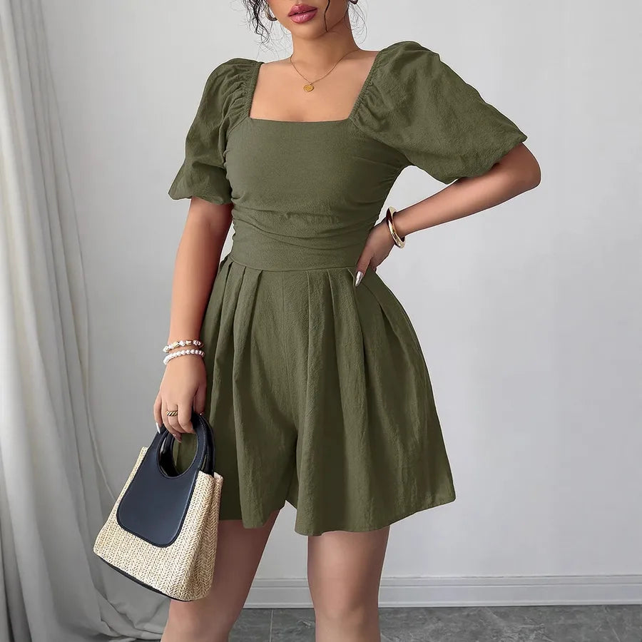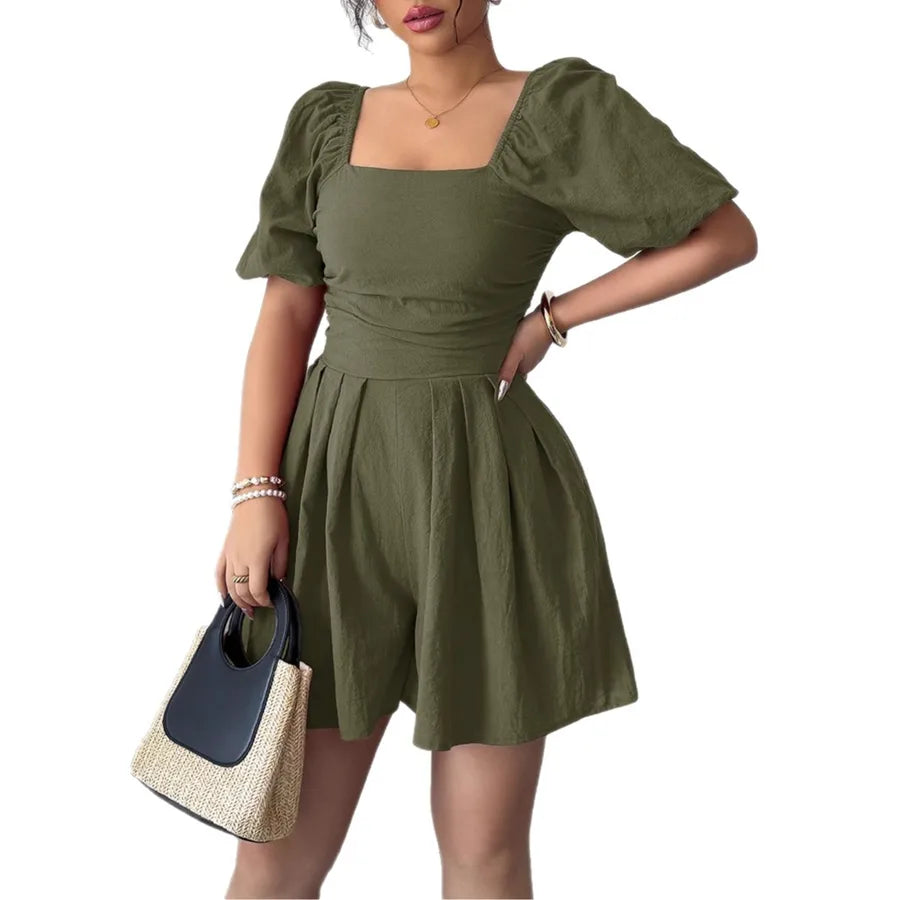 Wholesale Women's Casual Elegant Pleated Solid Color Holiday Daily Square Neck Short Sleeve Sheath Dress