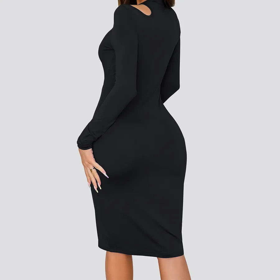 Wholesale Women's Casual Solid Color Daily Round Neck Long Sleeve Sheath Dress