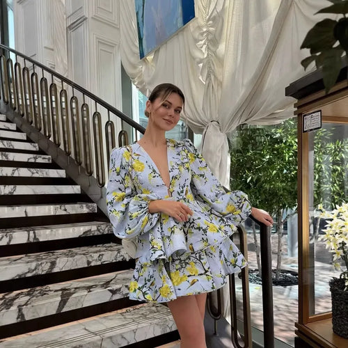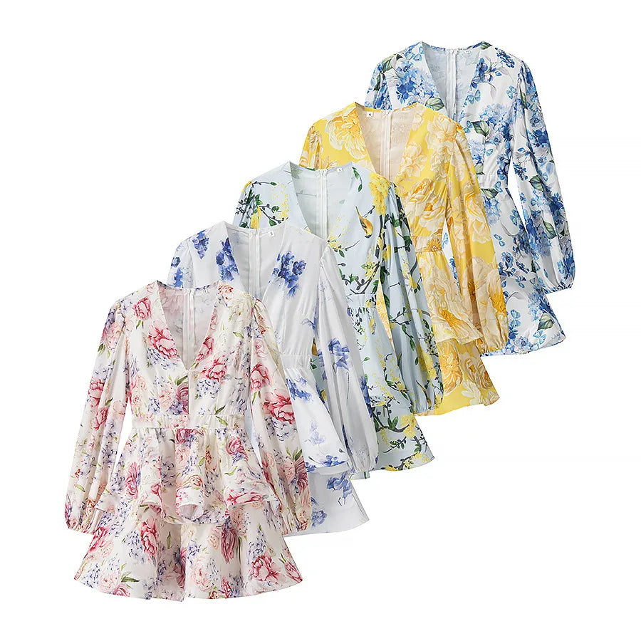 Wholesale Women's Elegant Printing Holiday Daily V Neck Long Sleeve S1562