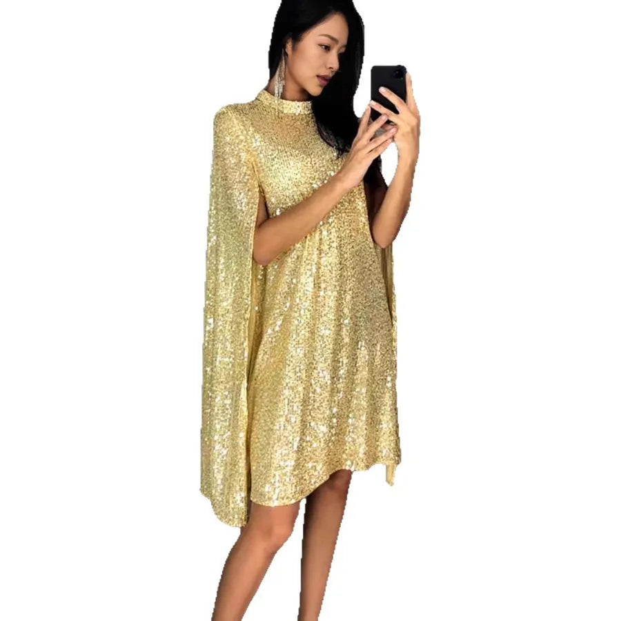 Wholesale Women's Elegant Romantic Streetwear Zipper Solid Color Club Banquet Date Round Neck Sleeveless Sequin Dress